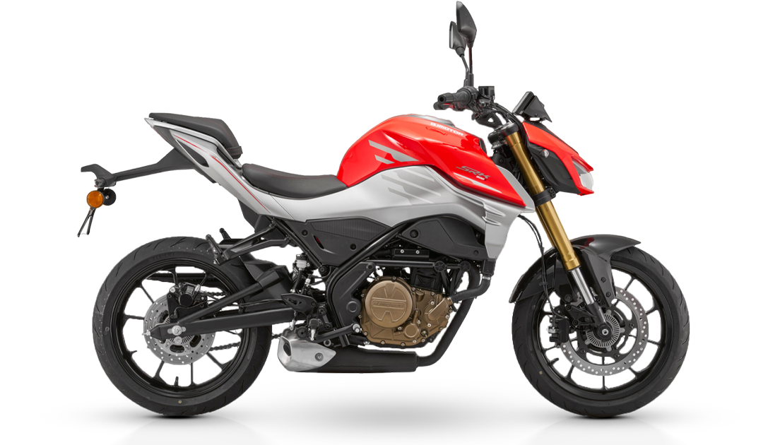La SRK 300 S es una moto tipo «naked» con un diseño dinámico, ligero y ágil. Su motor, aunque compacto, te hará sentir la potencia en cada aceleración, cuenta con un sistema de inyección electrónica que asegura un rendimiento preciso y eficiente, mientras que su transmisión de seis velocidades te permite dominar cualquier camino. Su tanque de combustible te dará la autonomía para explorar sin límites, mientras que su peso ligero te permitirá maniobrar con facilidad.